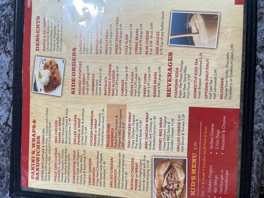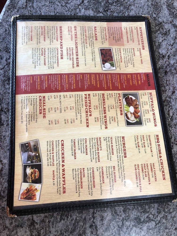 Buffalo's menu boasts an array of options, from juicy boneless wings to the unique Chicken and Waffles, perfectly combining savory and sweet. Each dish is crafted using non-processed meats, ensuring freshness with every bite. Patrons rave about the mac and cheese and cornbread sides, which elevate the dining experience. The wings come in generous portions, and with various flavorful sauces to choose from, you're bound to find your new favorite.