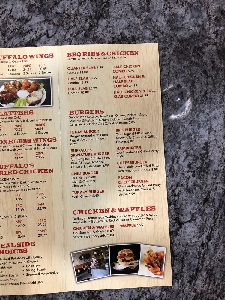 Welcome to Buffalo's, a charming family-owned eatery located at 261 Hackensack St, Wood-Ridge, NJ, specializing in chicken wings and comfort food. As you step in, the inviting aroma of freshly cooked fried chicken and homemade sauces envelops you, promising a delightful culinary experience.